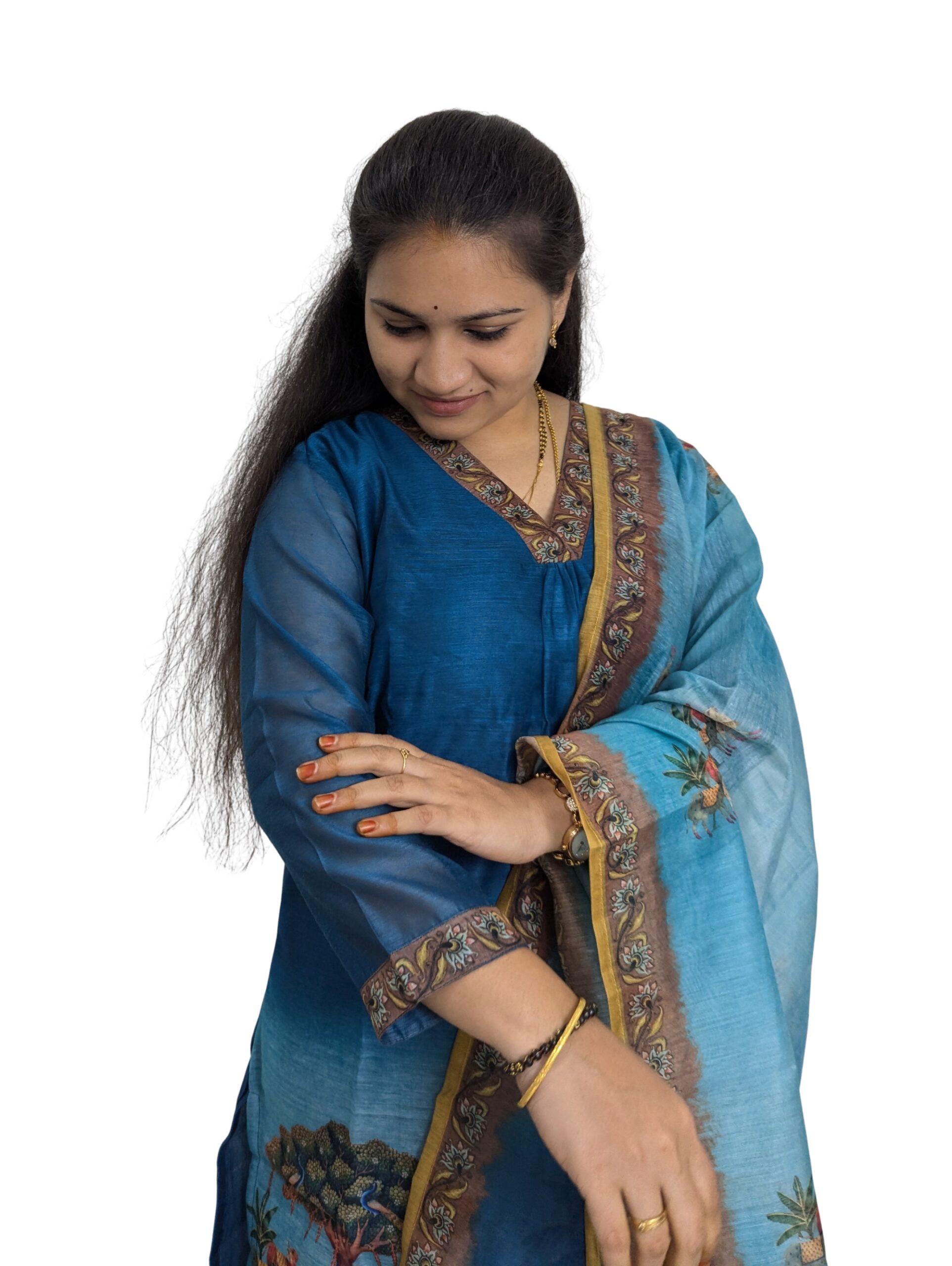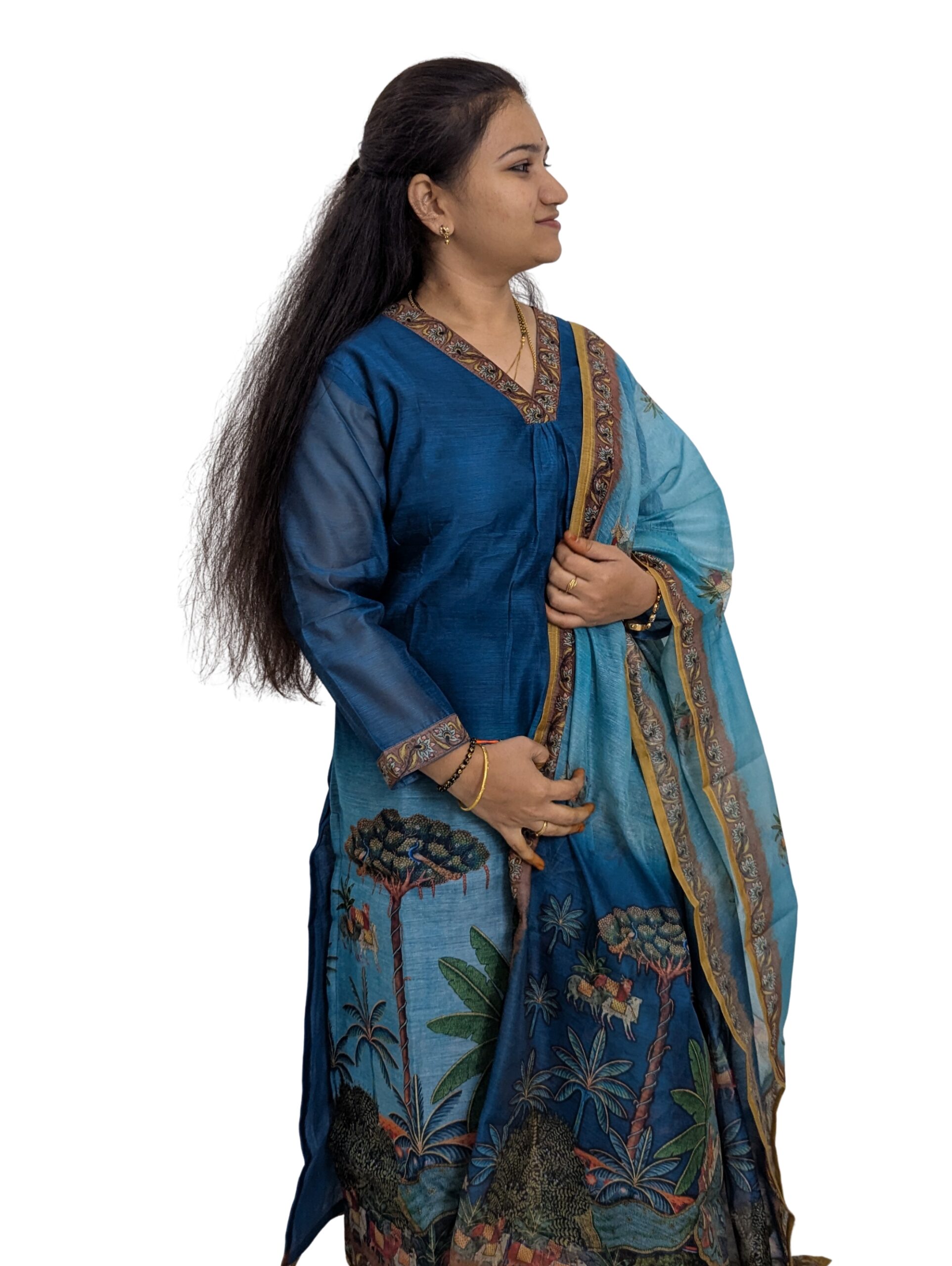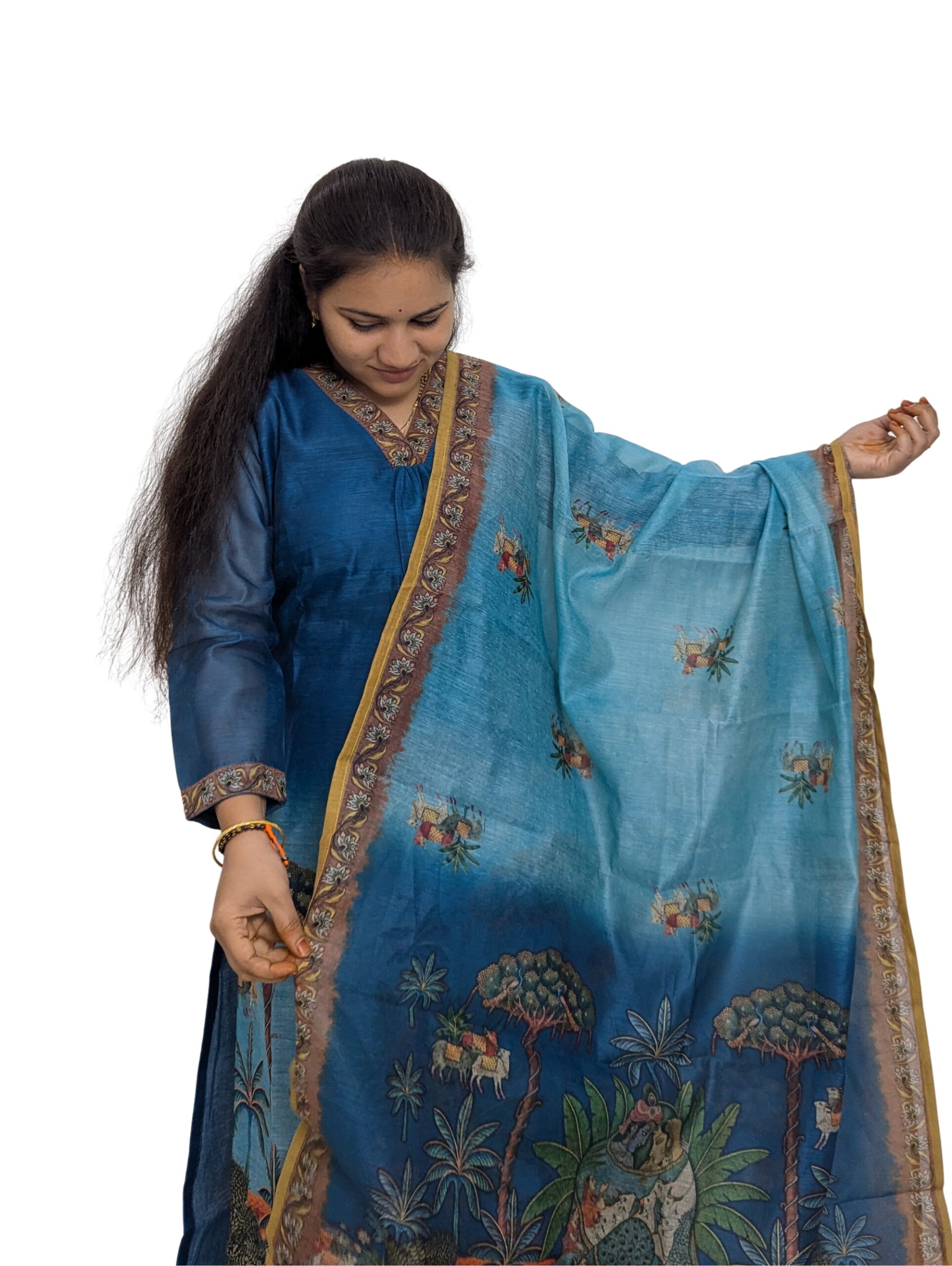 Mul Chanderi Blue and Skyblue Combo 3-Piece Set