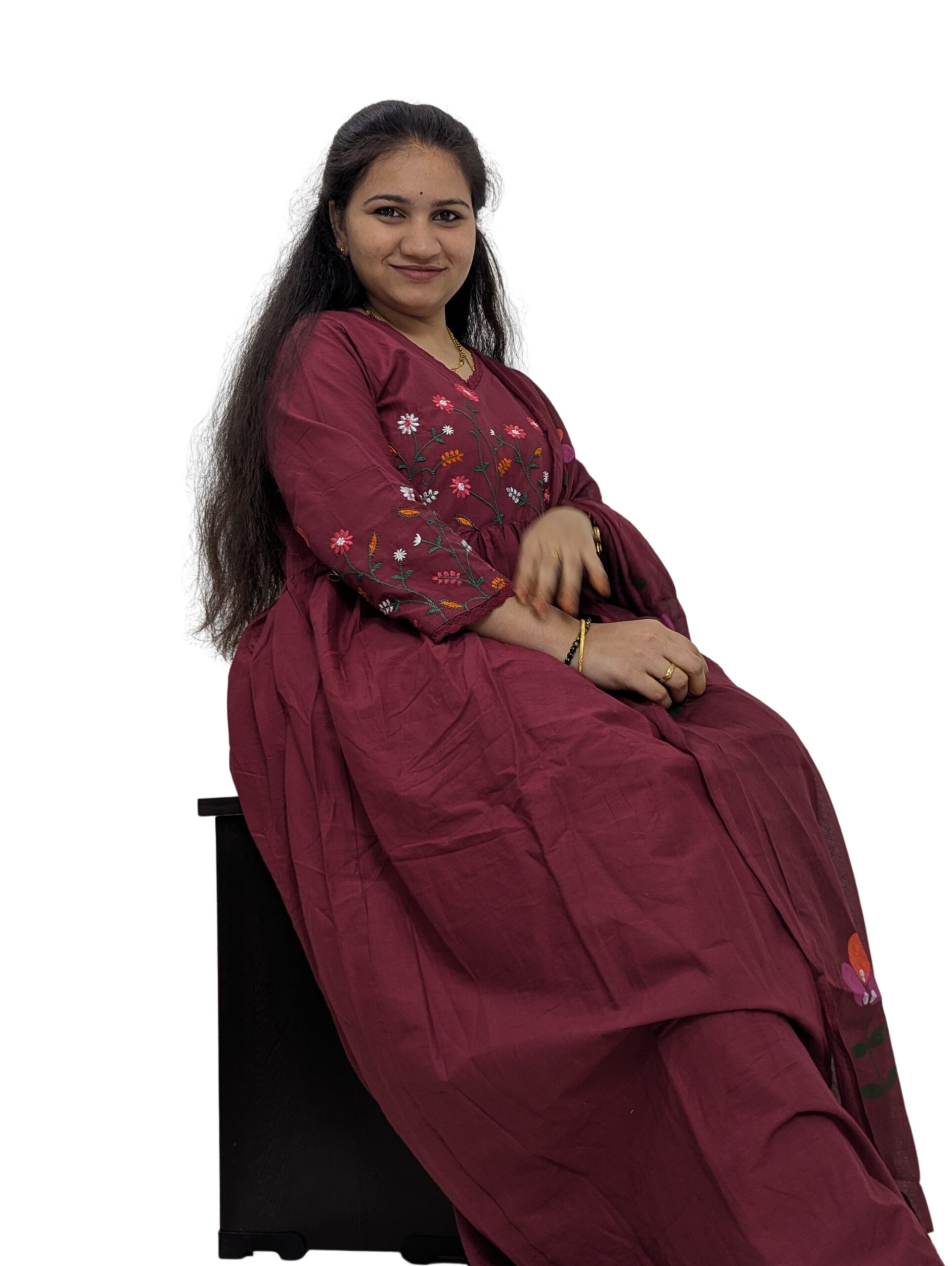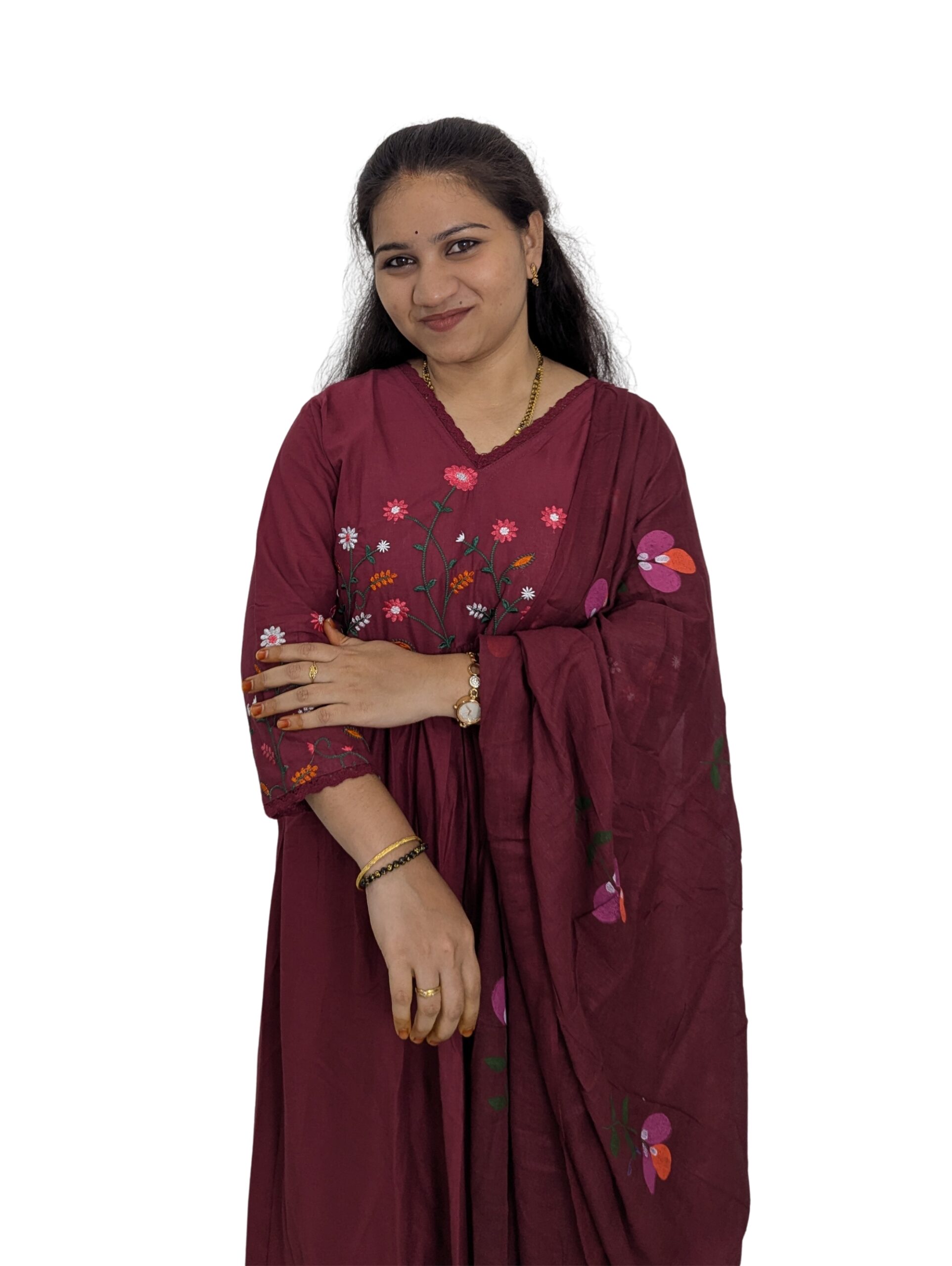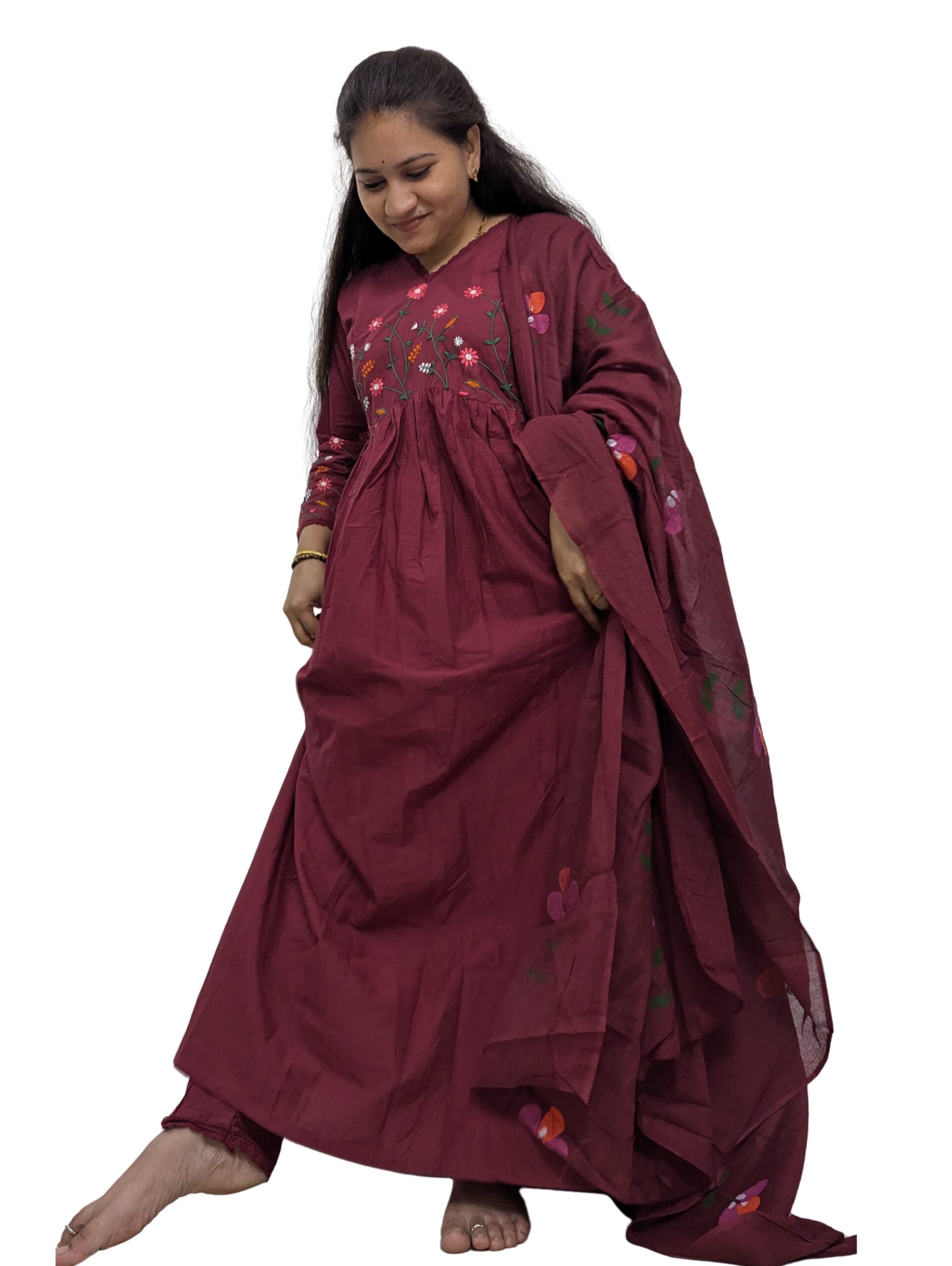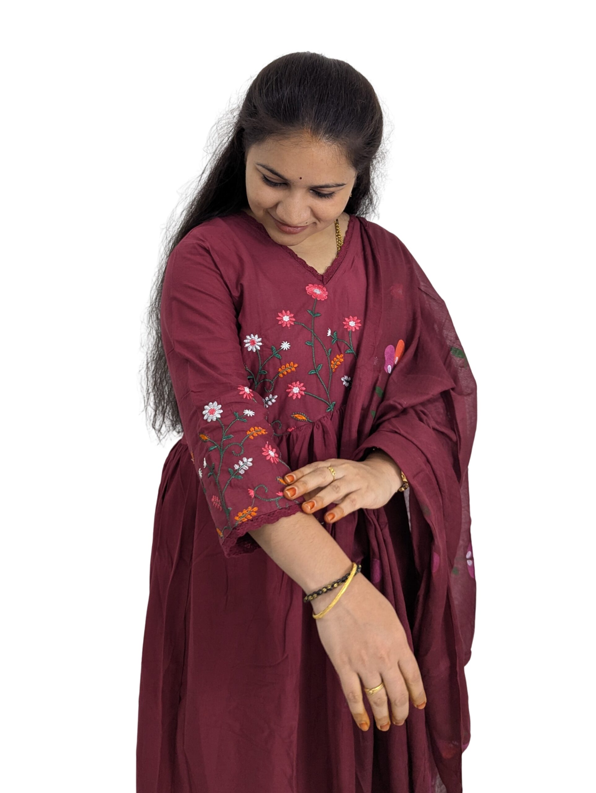 Mul Cotton Maroon 3-Piece Set